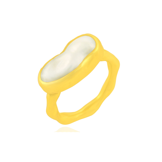 • Design & Appeal: Features an irregular, thick ring band with a fluid, molten or organic shape. It is topped with a large, non-circular cabochon gemstone (appearing to be mother-of-pearl or white agate) set into a clean bezel. This bold, artistic style appeals to customers seeking sculptural, modernist, unique, and statement rings.