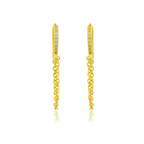 Introduce a dynamic, edgy piece to your inventory with our Pave Huggies Chain Hoops. This modern design features a sparkling hoop paired with a delicate, free-flowing chain, offering retailers a versatile, high-margin item with strong fashion-forward and stackable appeal.